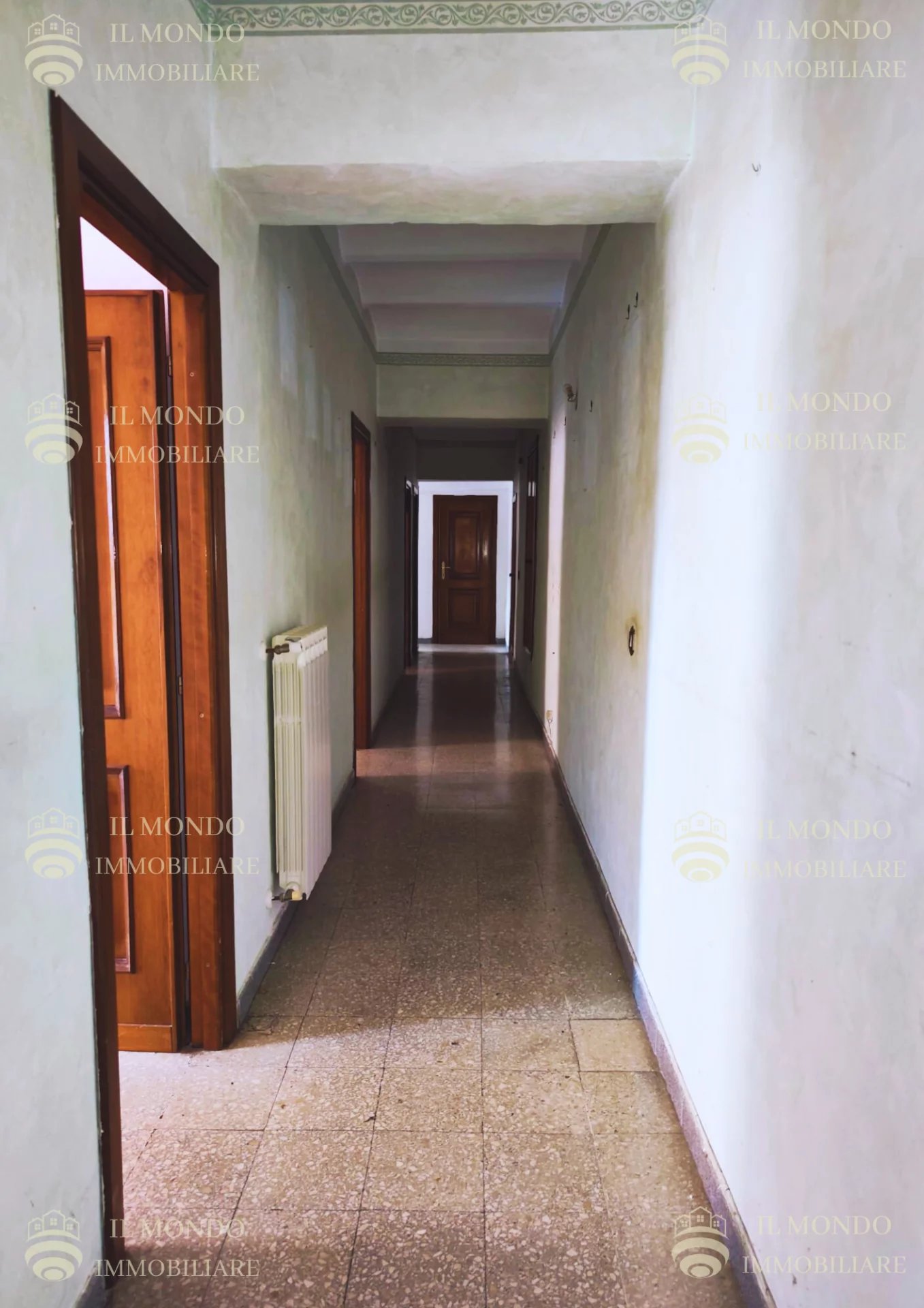 L’immobile è composto da un ingresso su disimpegno, cucina con camino, ampio soggiorno con uscita sul balcone angolare, due camere da letto di cui una ha accesso allo stesso spazio esterno del salotto e un bagno. La disposizione dell’appartamento permette, con il vantaggio di doverlo ritrutturare, di usufruire al meglio degli ambienti abitativi così da poter ricavare una terza camera e creare un open space soggiorno – A/K trasformando così la proprietà in 4 locali.